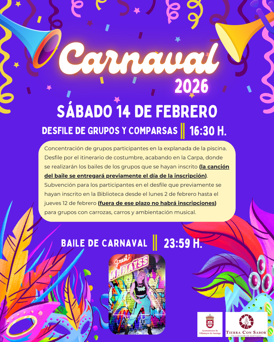 - Carnaval 2026🥳🎭 ¡CARNAVAL 2026 EN VILLAMAYOR DE SANTIAGO! 🎭🎉 👯🎶 El desfile comenzará… Lee más: Carnaval 2026